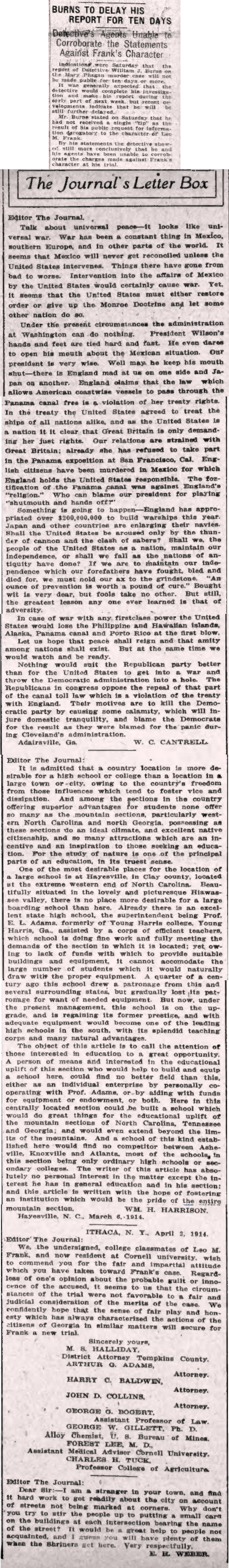 - 0621) Tuesday, 20th April 1915: Judge Roan's Letter To Be Used In Frank Plea For Clemency, The Atlanta Journal [Last Updated On: January 13th, 2026] [Originally Added On: January 9th, 2026]