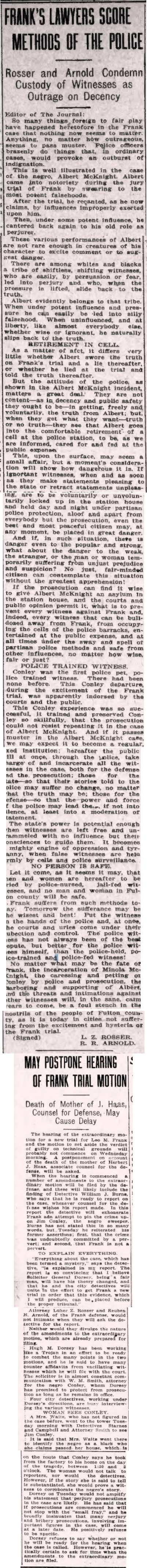 - 0577) Wednesday, 13th January 1915: Frank's Counsel Joins Move To Advance Case, The Atlanta Journal [Last Updated On: January 30th, 2026] [Originally Added On: January 9th, 2026]