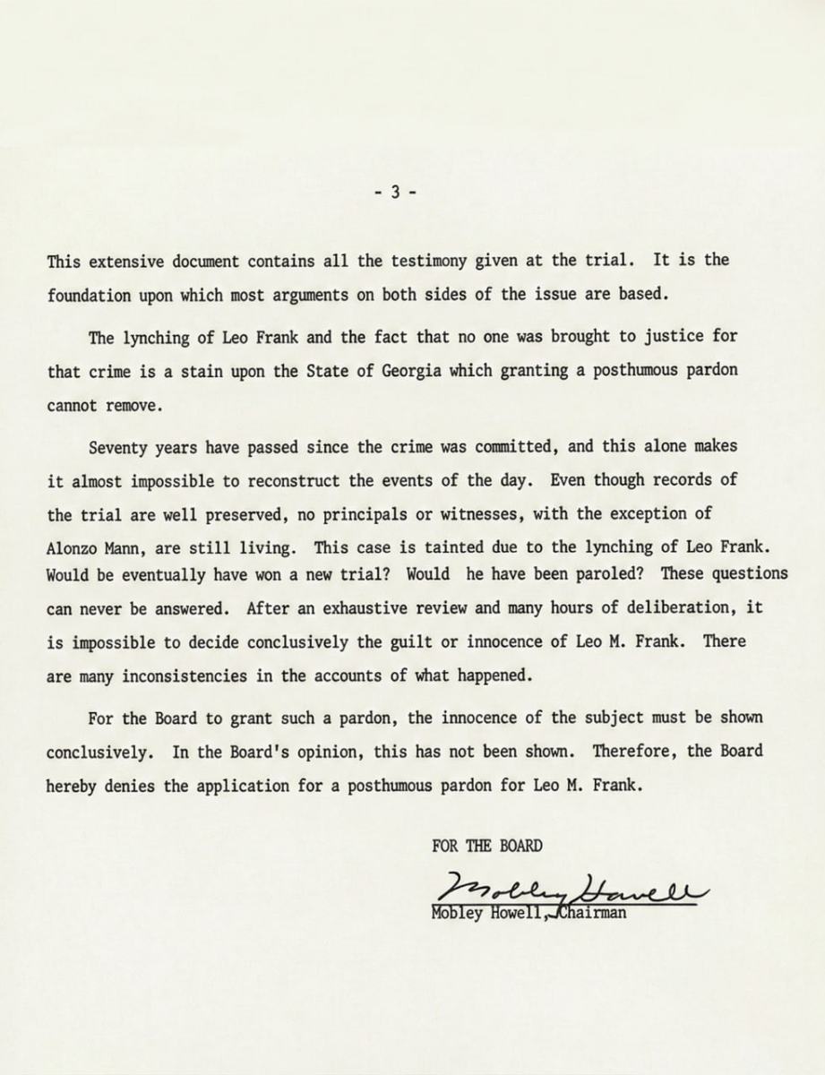 DECISION IN RESPONSE TO APPLICATION FOR POSTHUMOUS PARDON FOR LEO M. FRANK