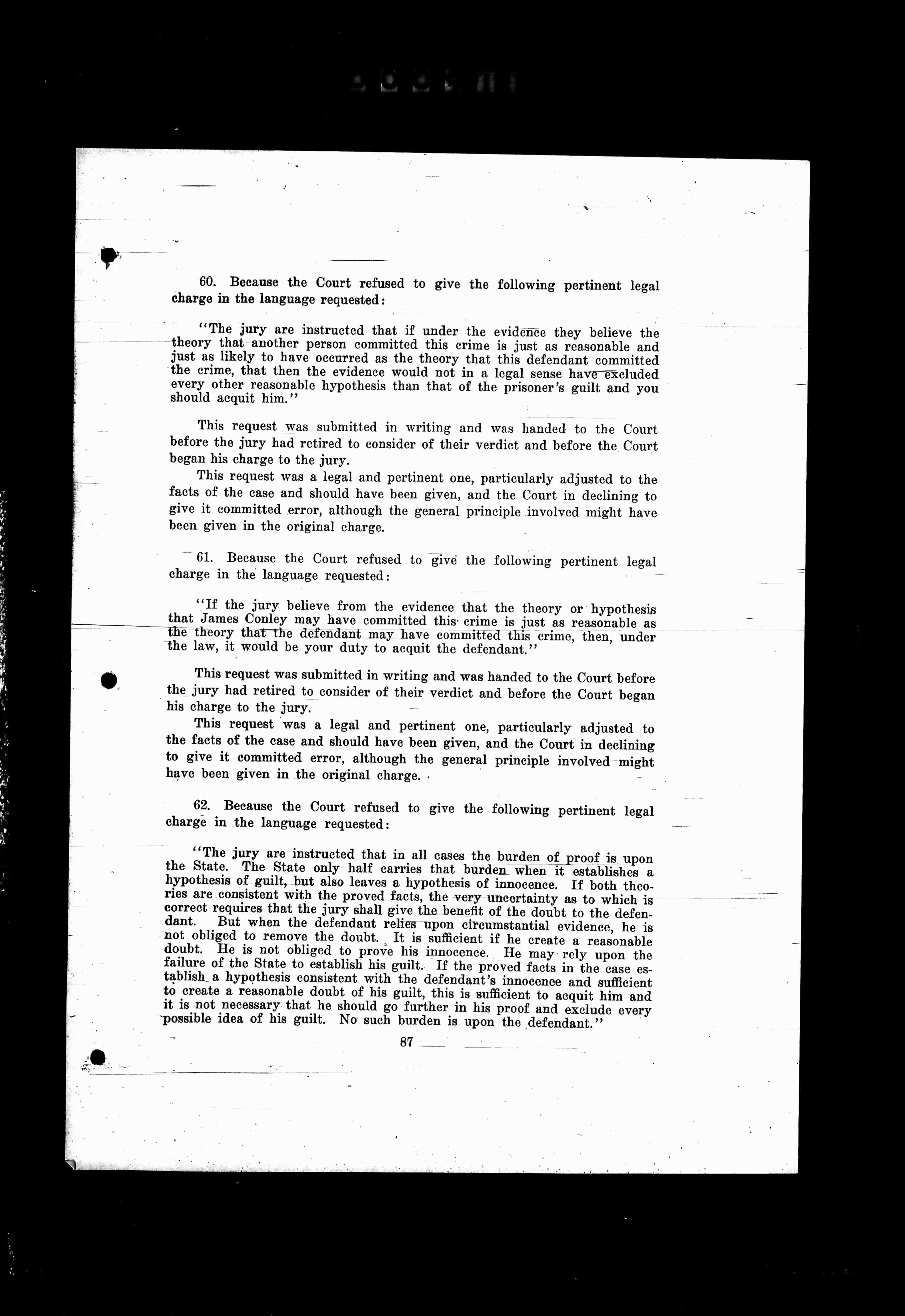"If the jury believe from the evidence that the theory or hypothesis that James Conley may have committed this crime is just as reasonable as the theory that the defendant may have committed this crime, then, under the law, it would be your duty to acquit the defendant."