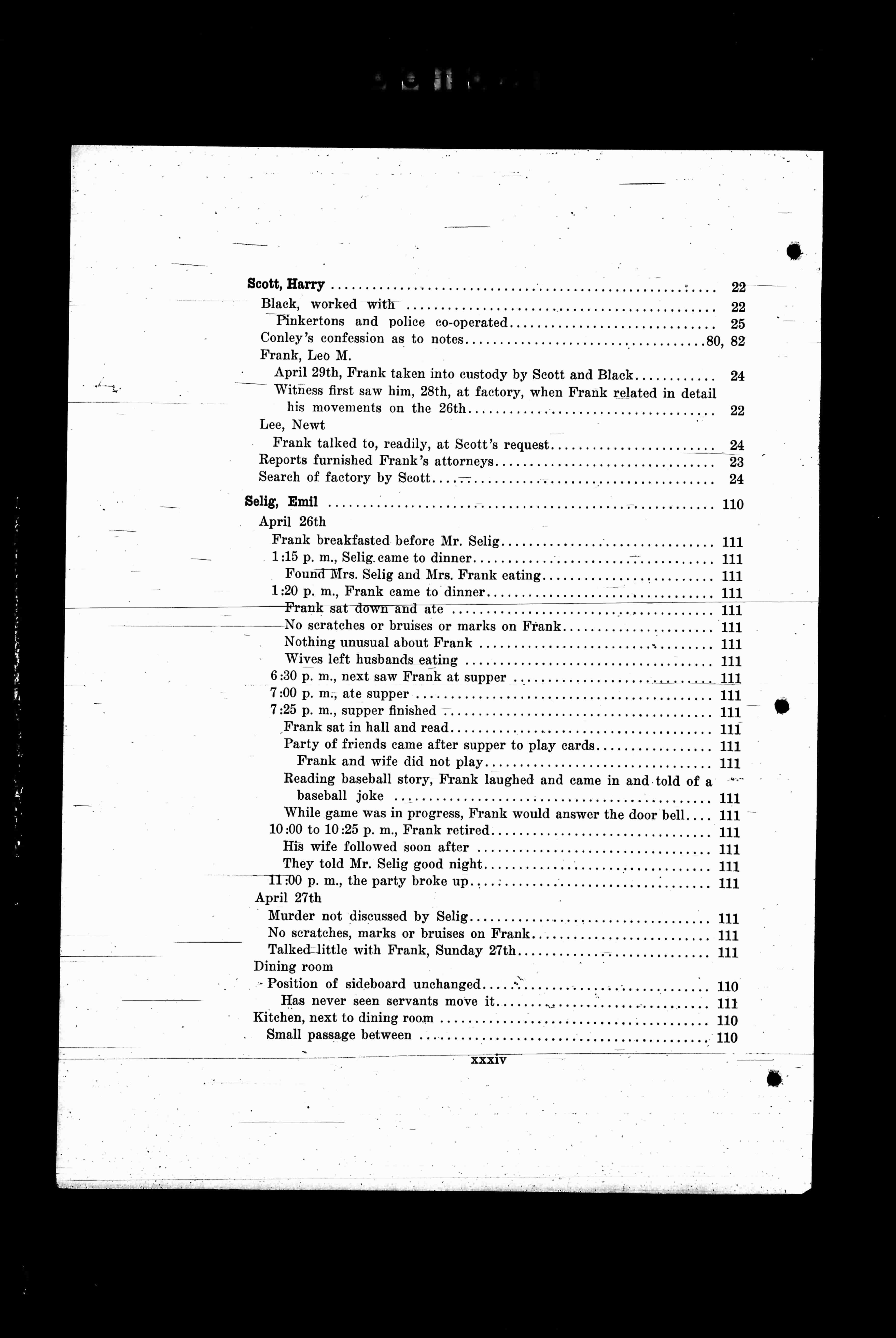 April 29th, Frank taken into custody, by Scott and Black, Page 24.
