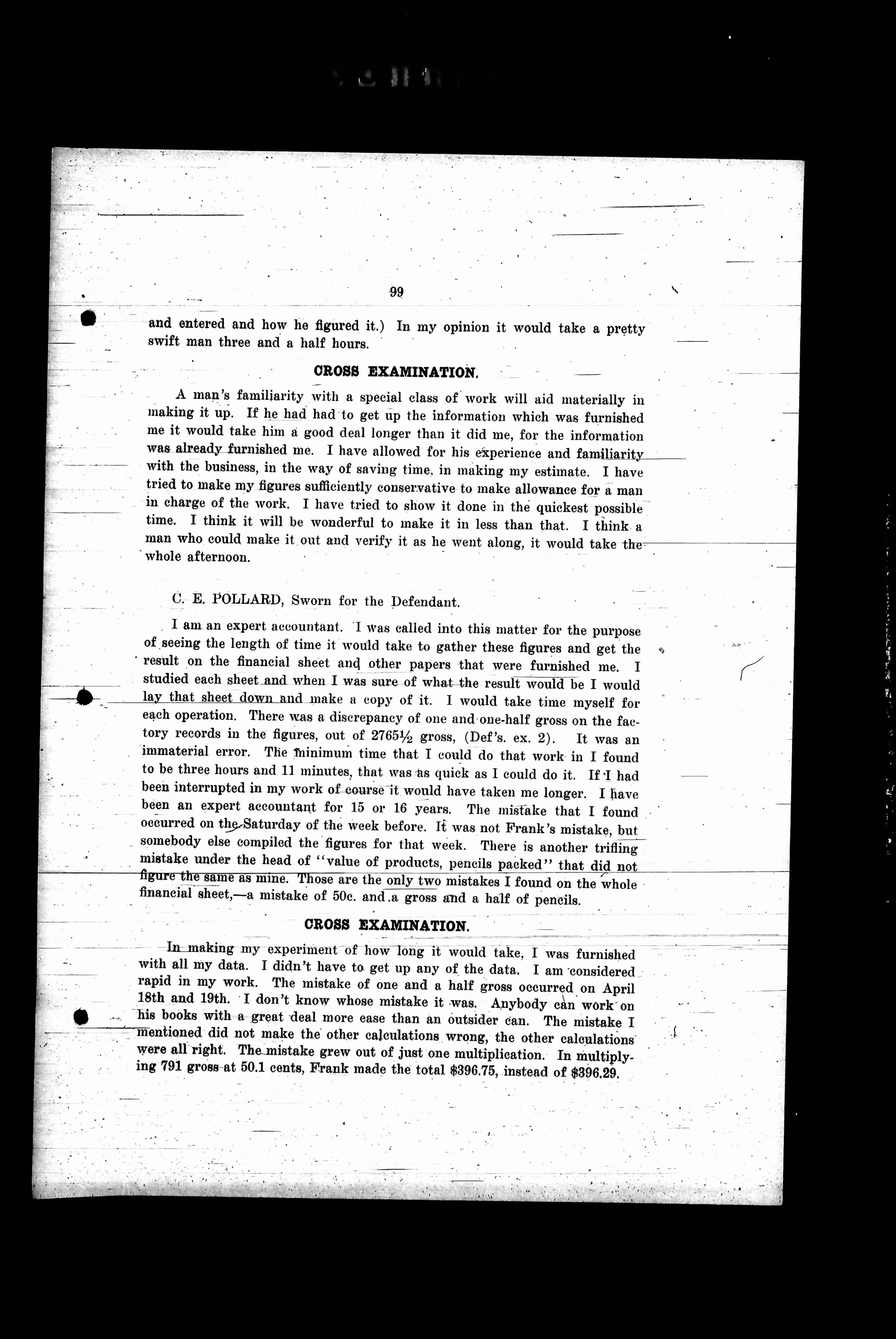 ing 791 gross at 50.1 cents, Frank made the total $396.75, instead of $396.29.