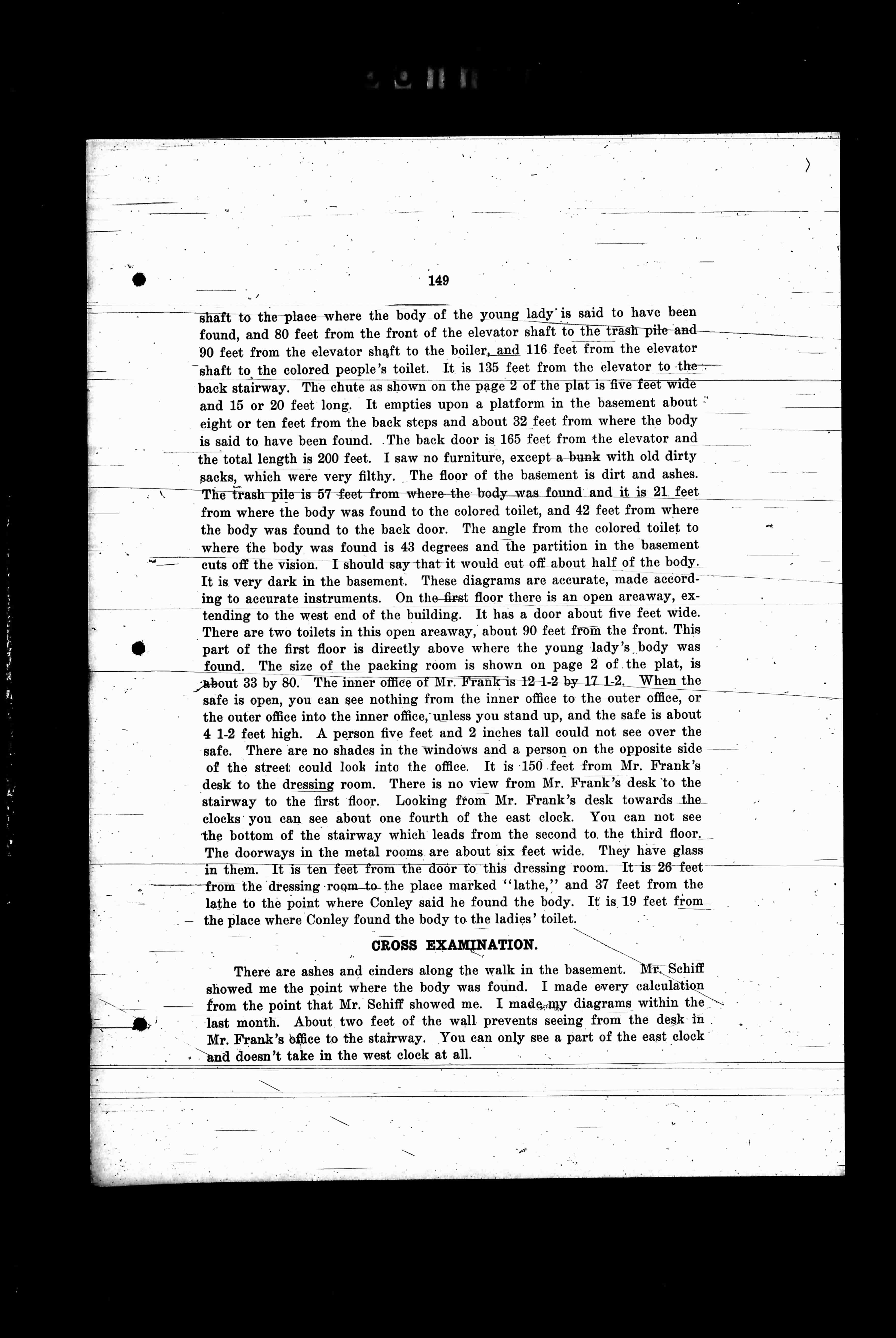 lathe to the point where Conley said he found the body. It is 19 feet from