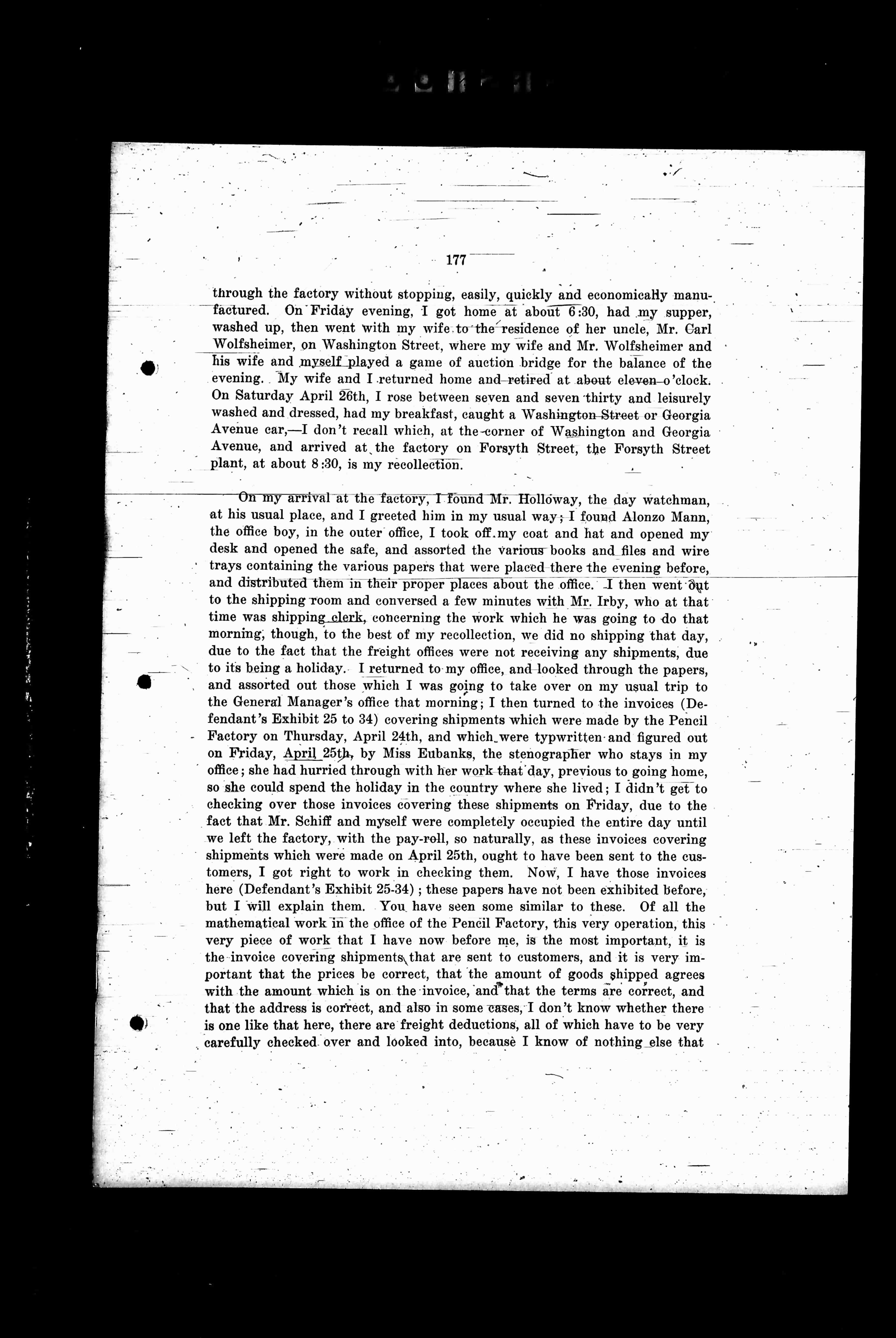 Factory on Thursday, April 24th, and which, were typewritten and figured out