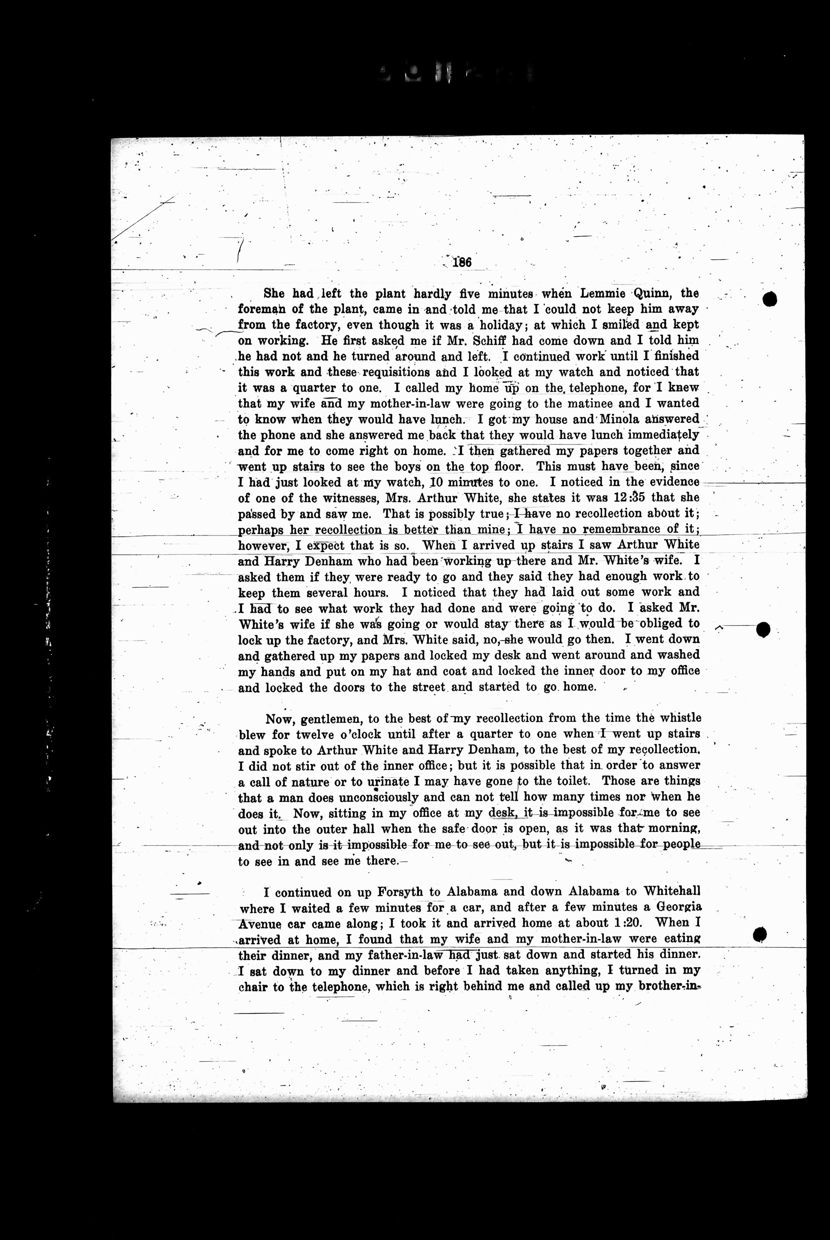lock up the factory, and Mrs. White said, no, she would go then. I went down