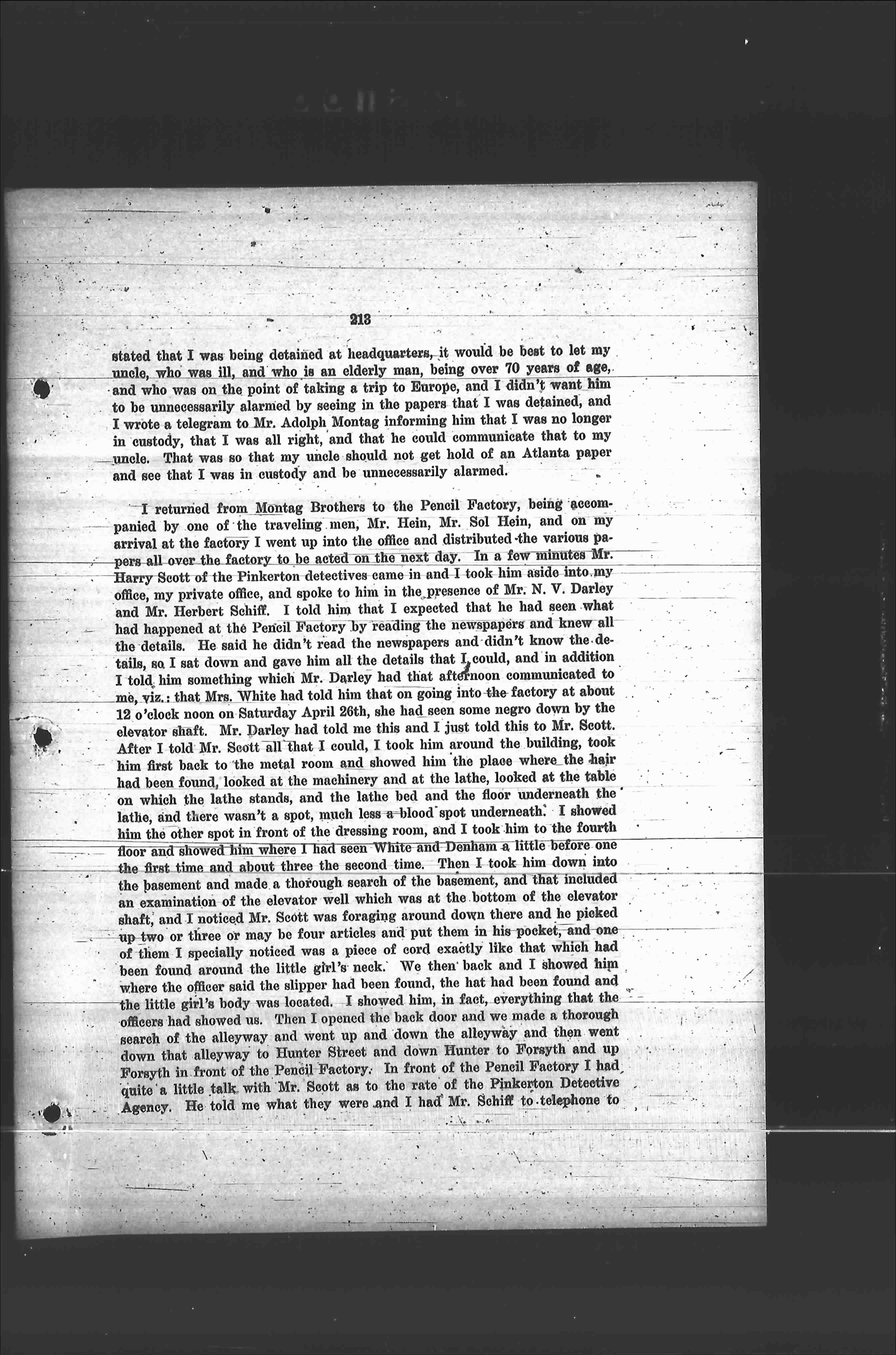 I returned from Montag Brothers to the Pencil Factory, being accompanied by one of the traveling men, Mr. Hein, Mr. Sol Hein, and on my