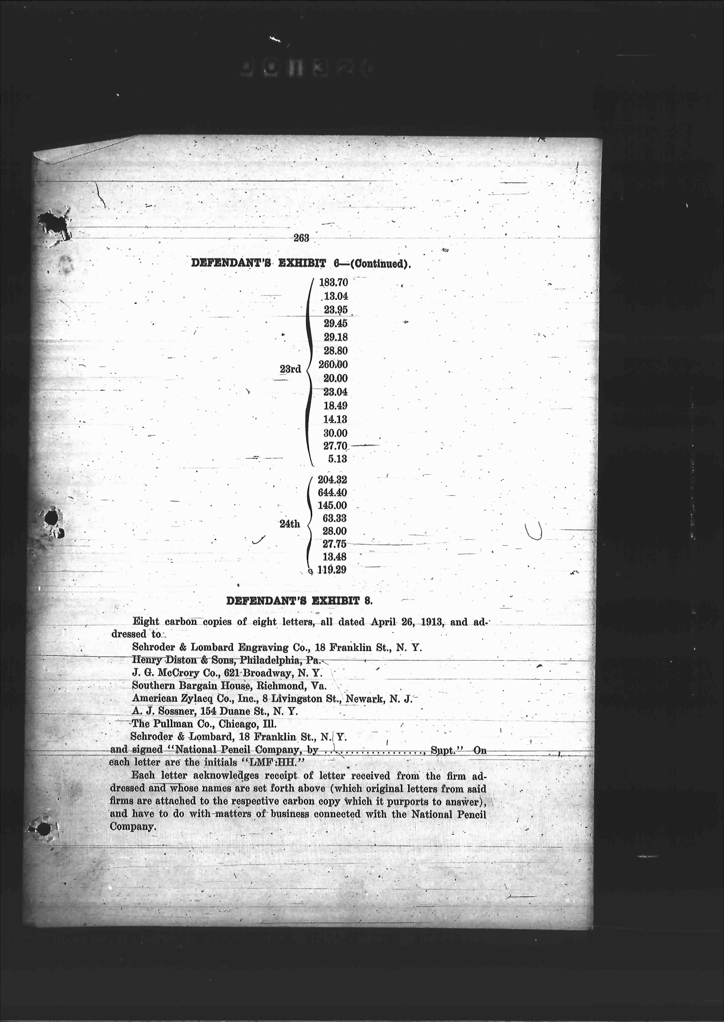 Eight carbon copies of eight letters, all dated April 26, 1913, and ad-