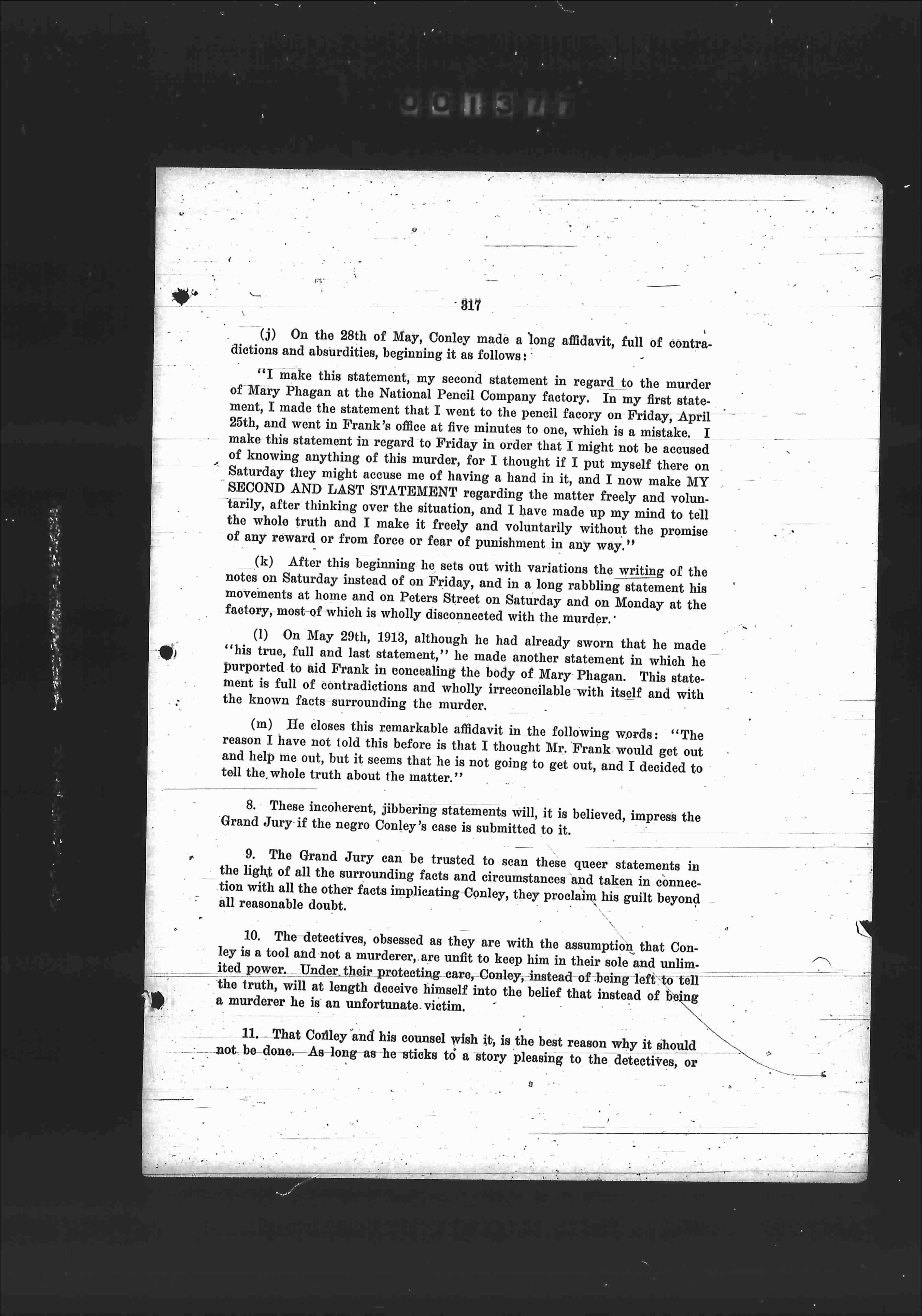 8. These incoherent, jibbering statements will, it is believed, impress the Grand Jury if the negro Conley's case is submitted to it.
