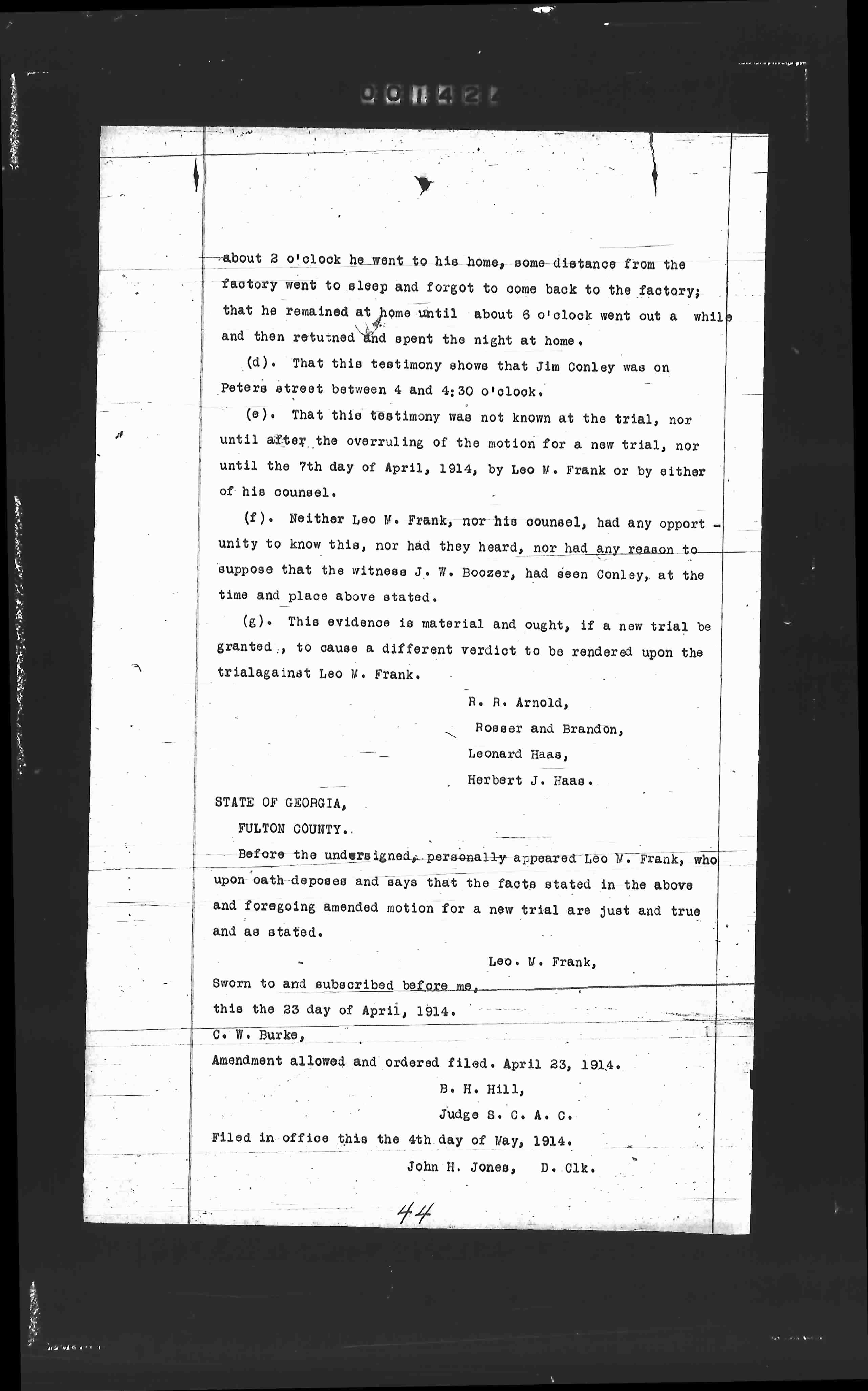 1416 Sheet – Supreme Court Georgia Appeals of Leo Frank, 1913, 1914