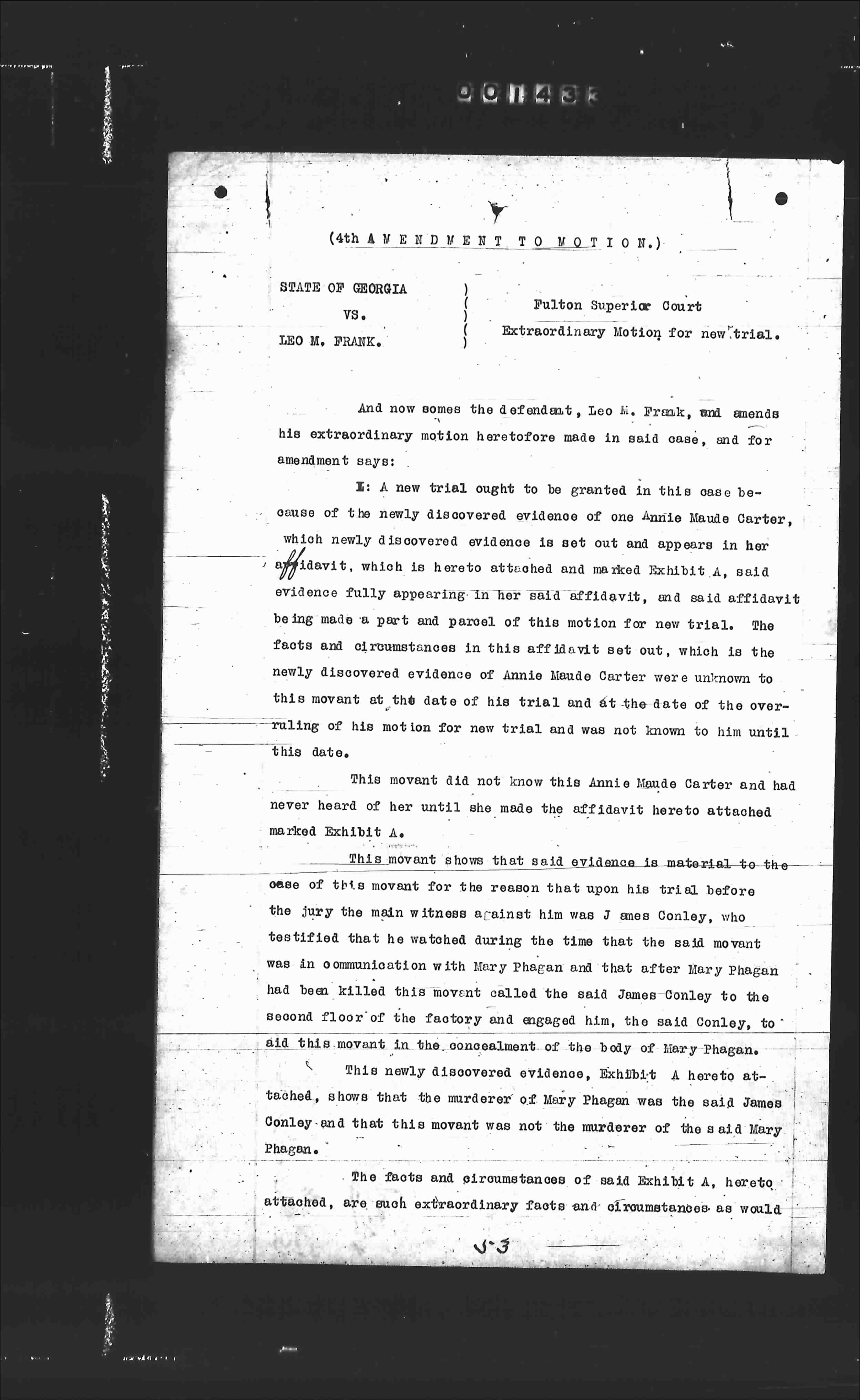 And now comes the defendant, Leo M. Frank, and amends his extraordinary motion heretofore made in said case, and for amendment says: