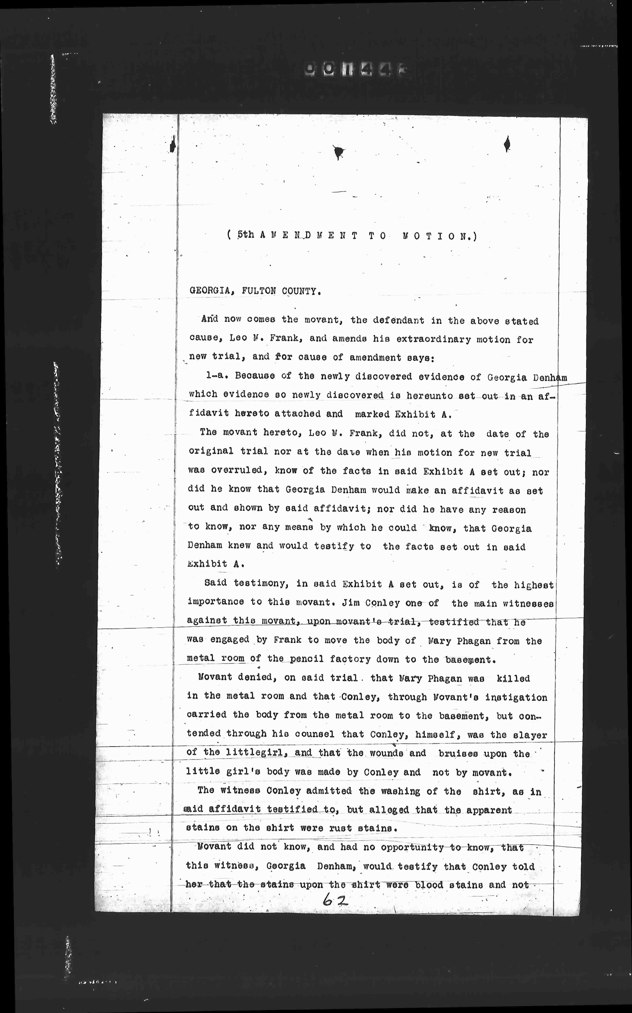 And now comes the movant, the defendant in the above stated cause, Leo M. Frank, and amends his extraordinary motion for new trial, and for cause of amendment says: