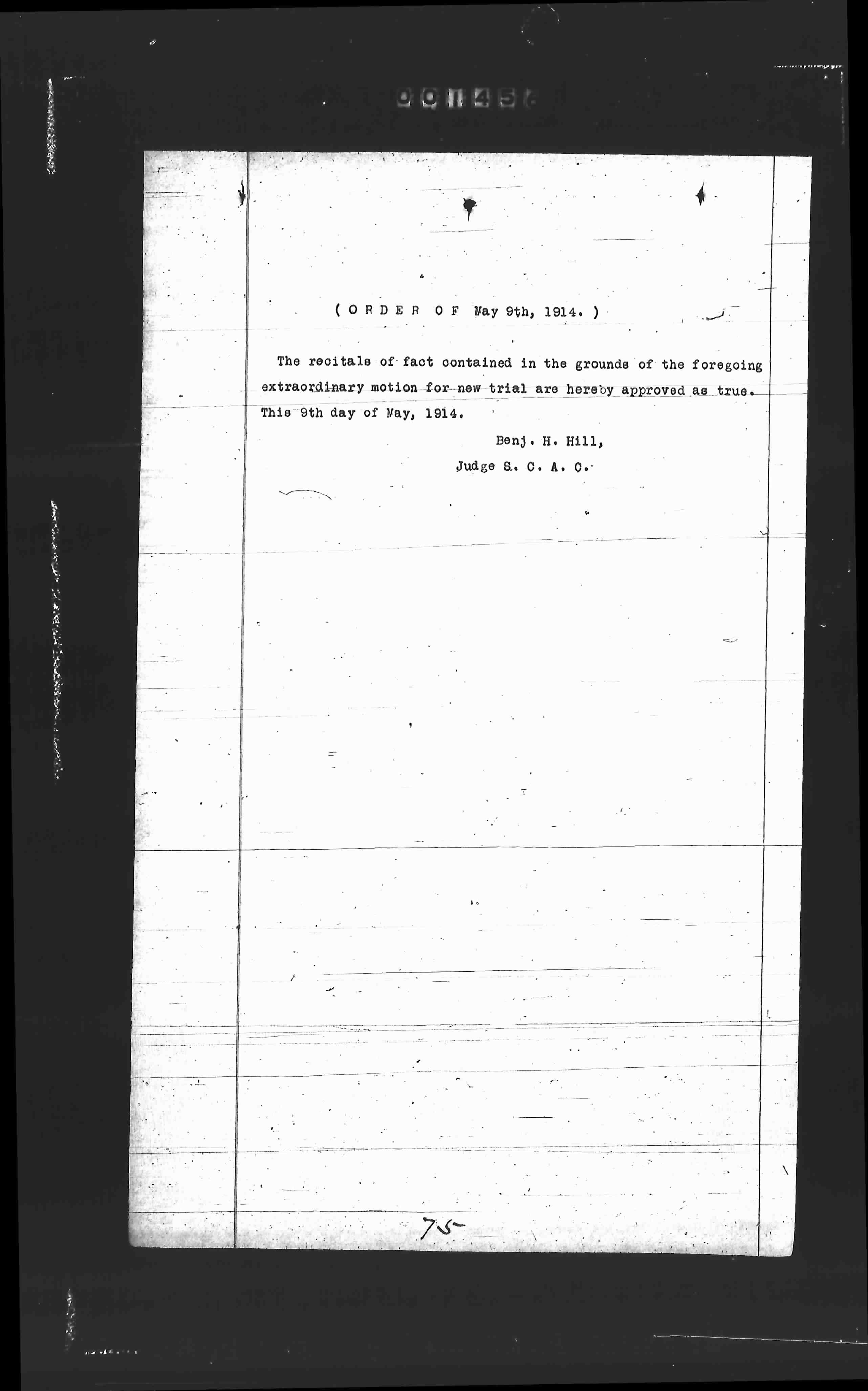 The recitals of fact contained in the grounds of the foregoing extraordinary motion for new trial are hereby approved as true. This 9th day of May, 1914.