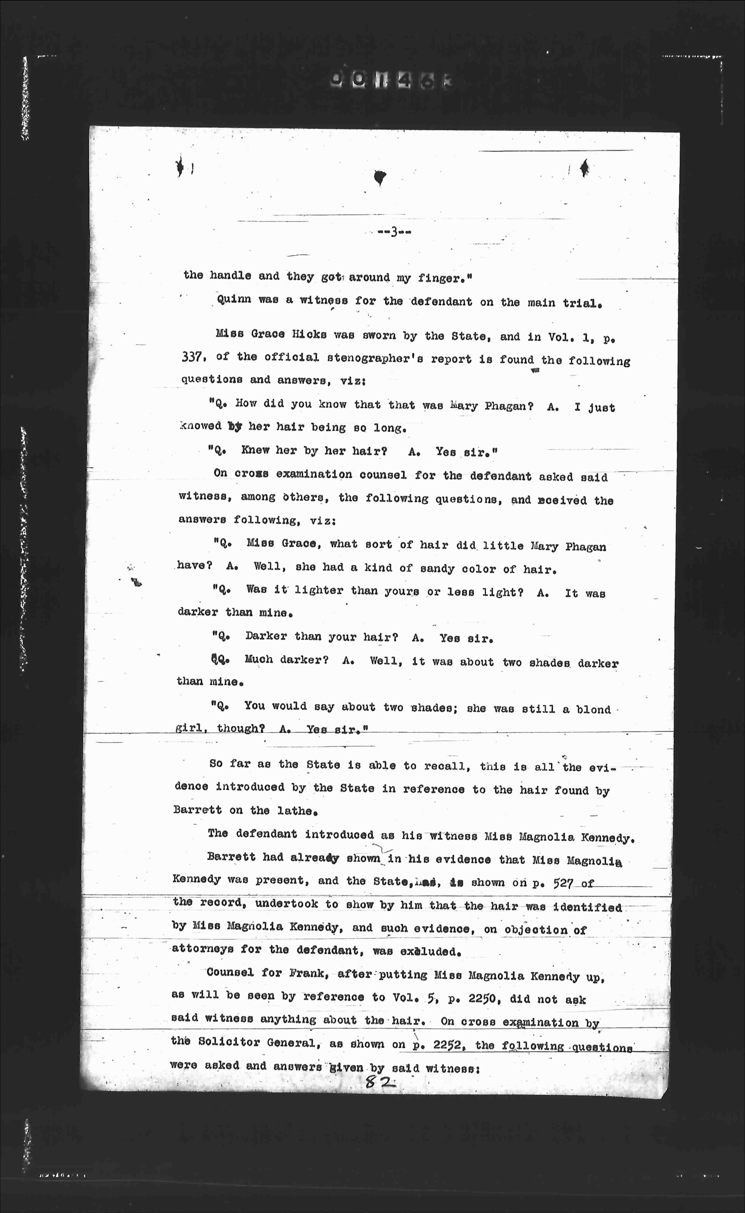 "Q. Miss Grace, what sort of hair did little Mary Phagan