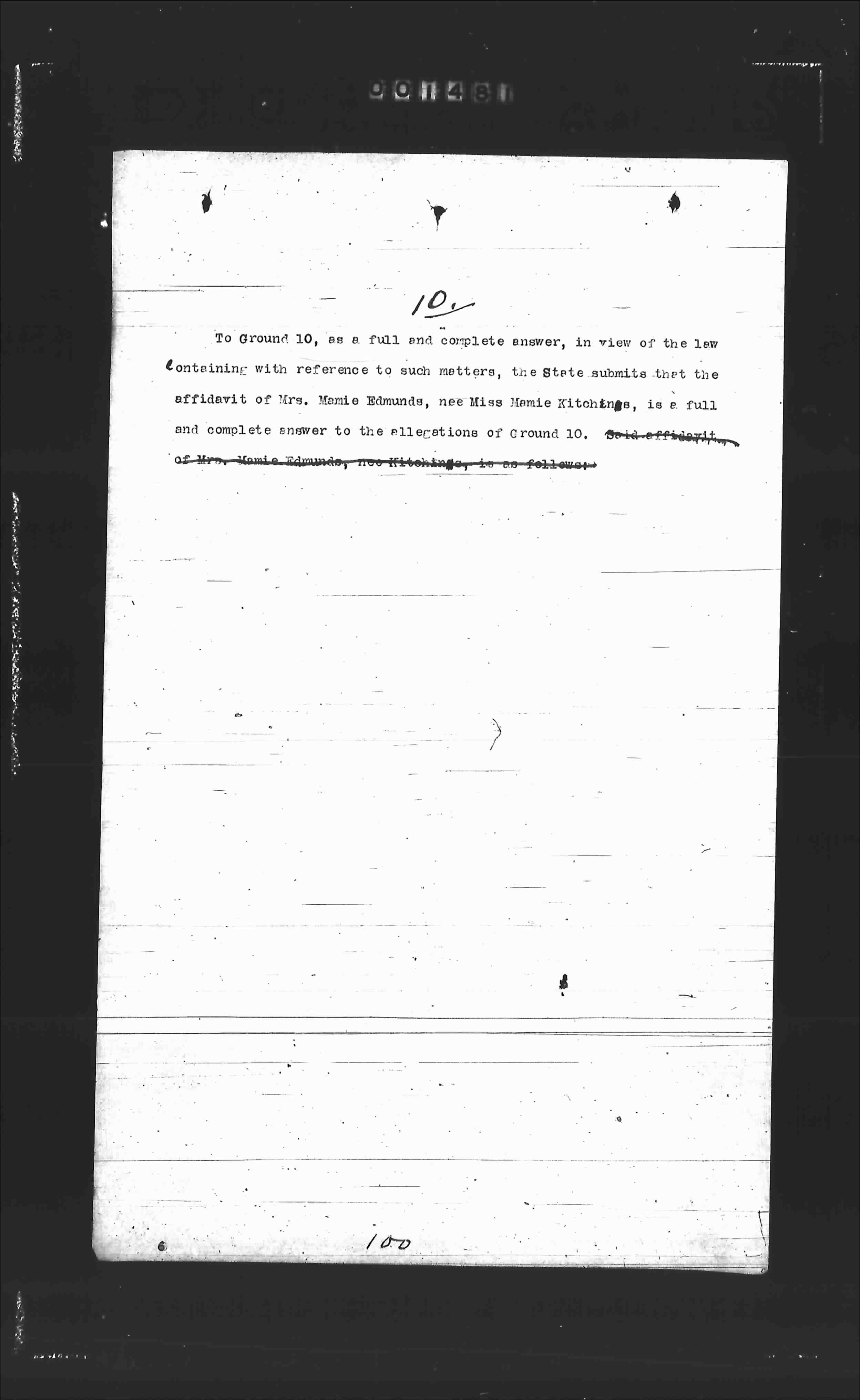 To Ground 10, as a full and complete answer, in view of the law obtaining with reference to such matters, the State submits that the affidavit of Mrs. Mamie Edmunds, nee Miss Mamie Kitchens, is a full and complete answer to the allegations of Ground 10. Gold affidavit of Mrs. Mamie Edmunds, nee Miss Mamie Kitchens, is as follows: