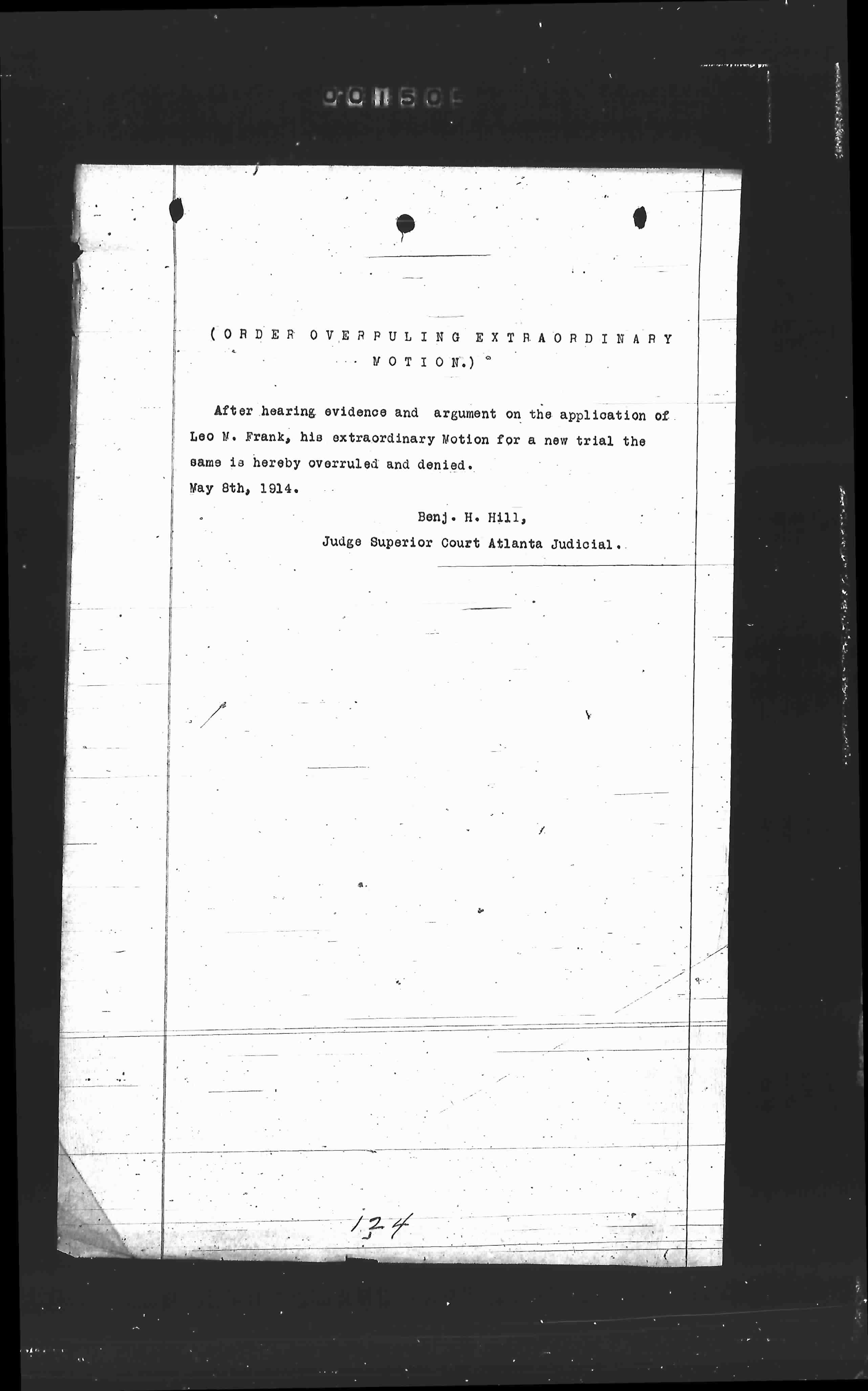 After hearing evidence and argument on the application of Leo M. Frank, his extraordinary Motion for a new trial the same is hereby overruled and denied.