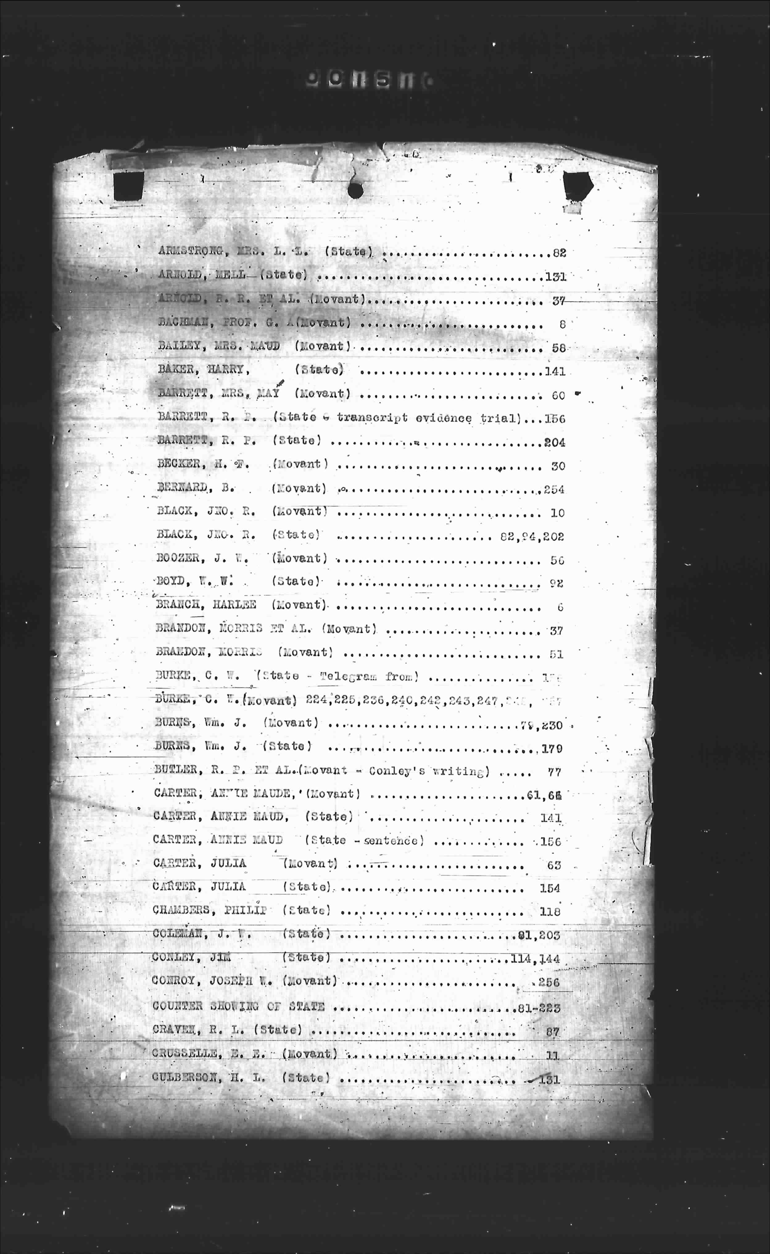 BLACK, JNO. R. (State), Pages 62, 94, 202.