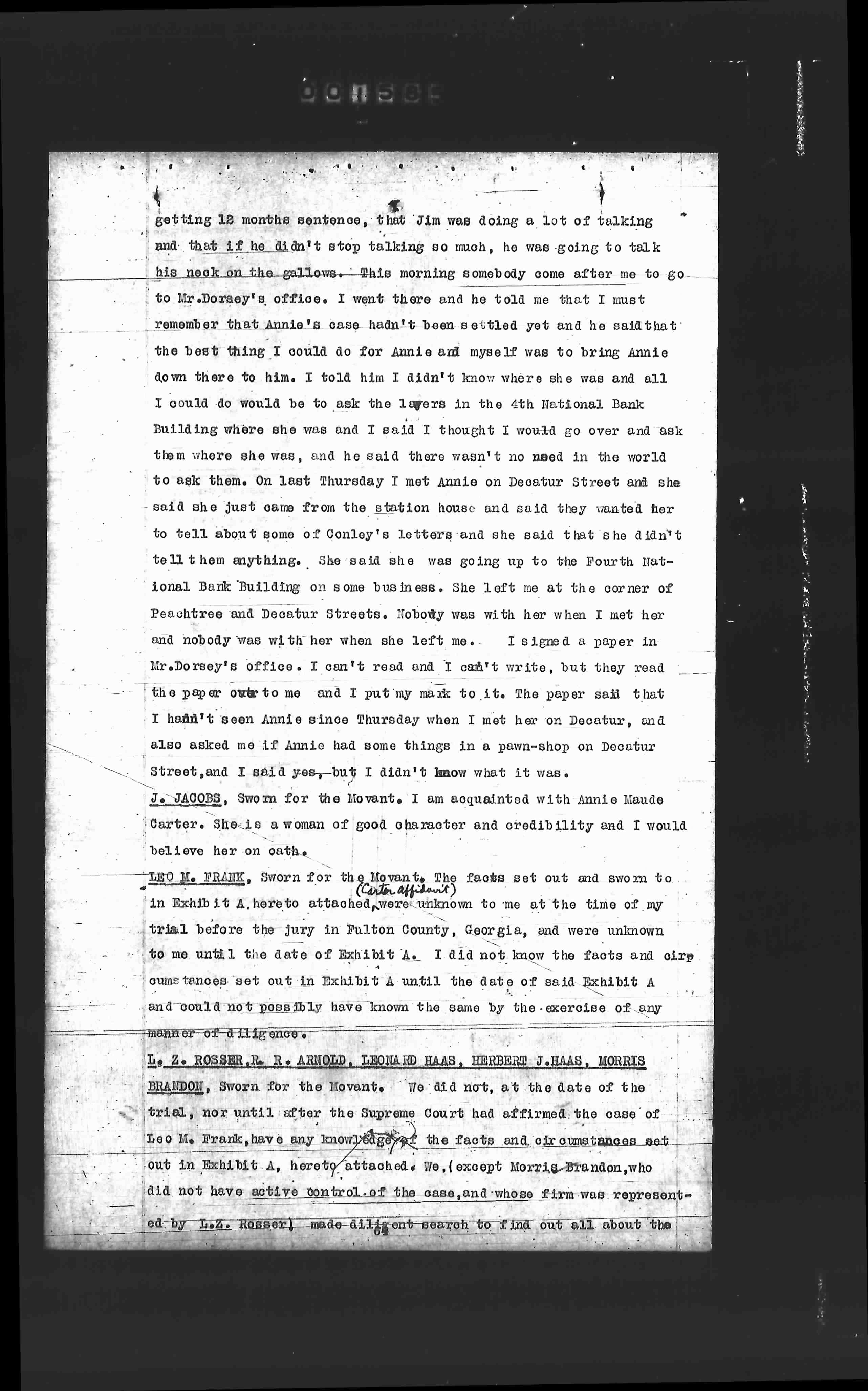 LEO M. FRANK, Sworn for the Movant. The facts set out and sworn to