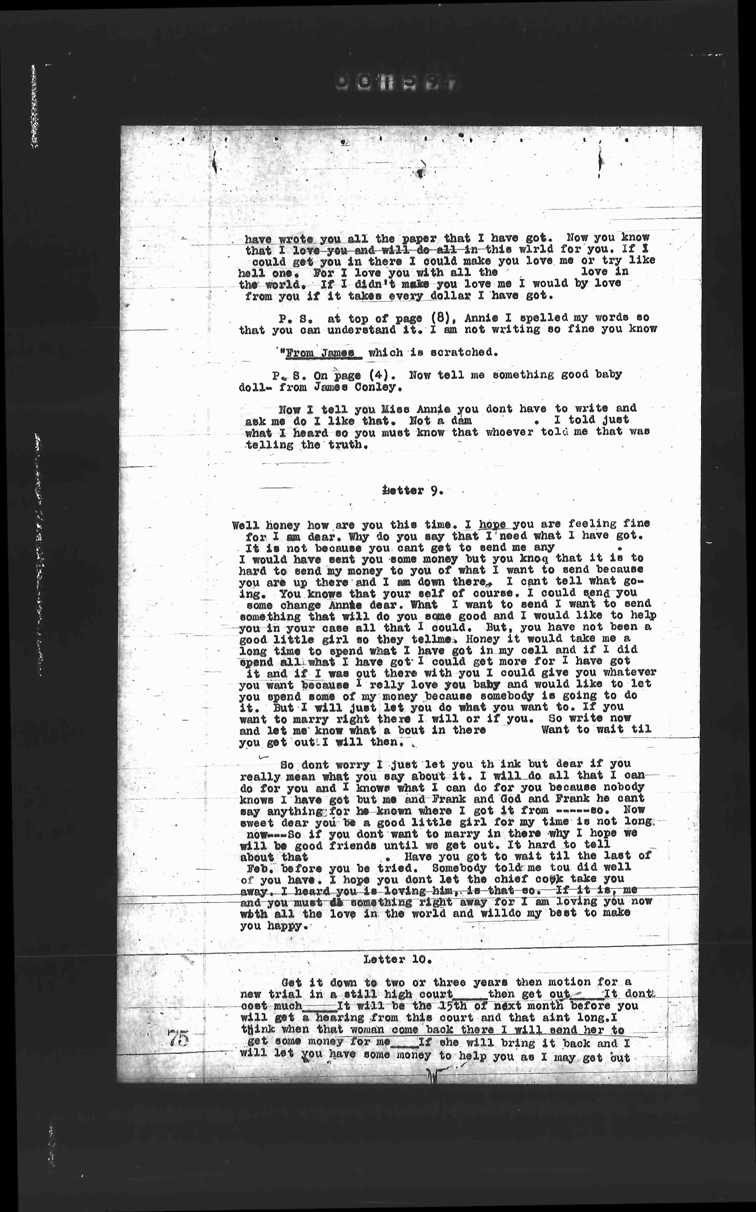 P. S. On page (4). Now tell me something good baby doll from James Conley.