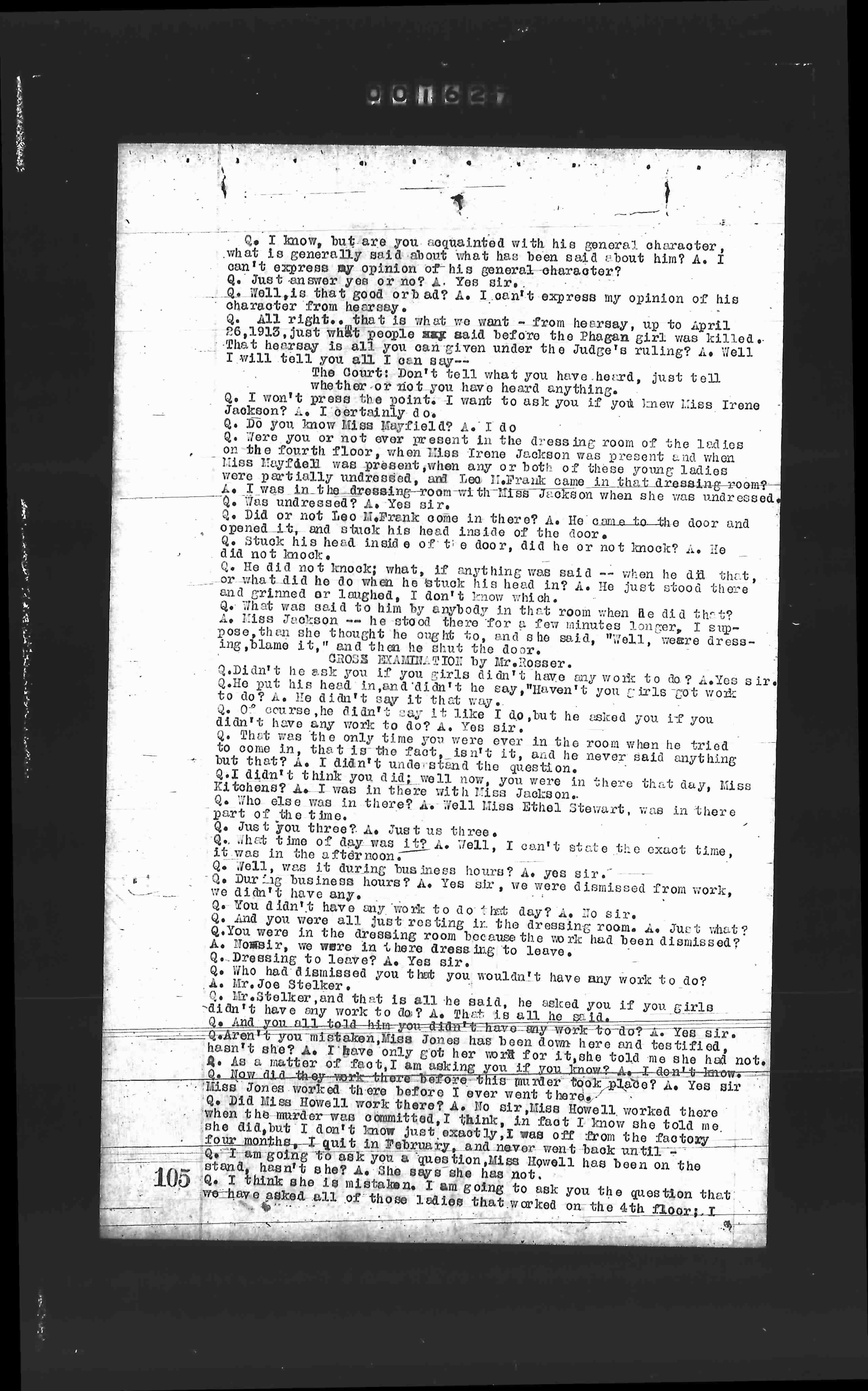 Q. All right, what is generally said about him from hearsay, up to April 26, 1913, just before the Phagan girl was killed. That hearsay is what people say about the Judge's ruling? A. Well, I will tell you all I can say, what you have heard.