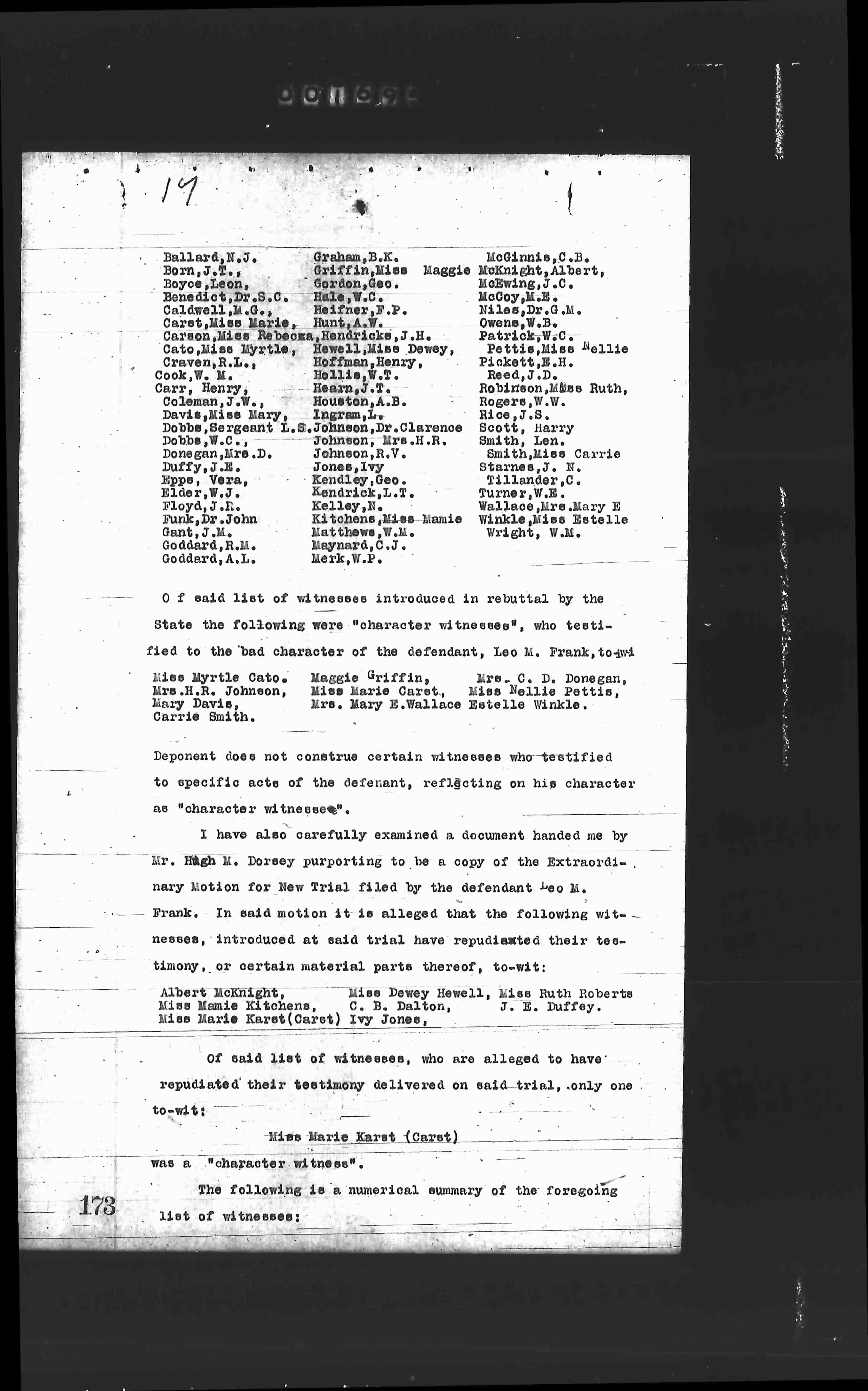 Frank. In said motion it is alleged that the following wit-