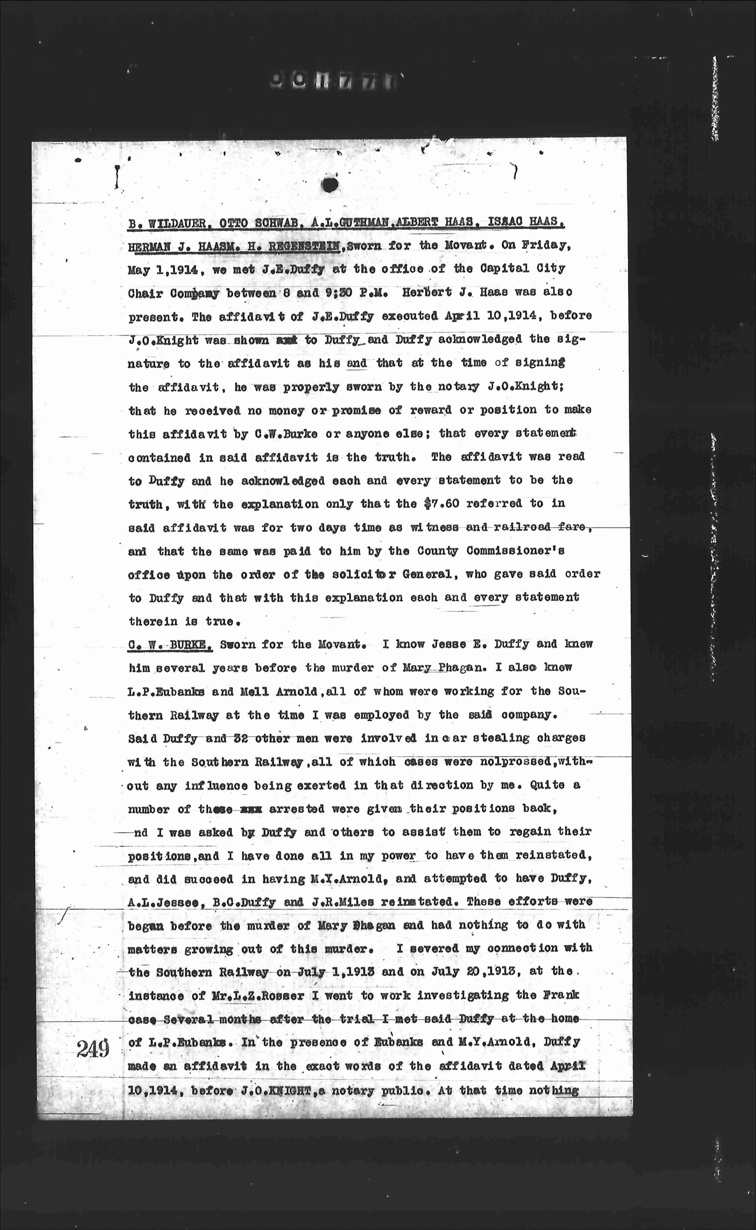 C.W. BURKE, sworn for the Movant. I know Jesse E. Duffy and knew