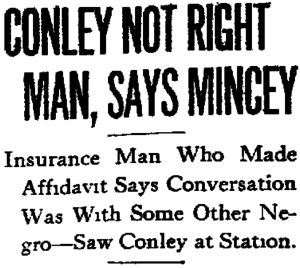 Insurance Man Who Made Affidavit Says Conversation Was With Some Other Negro—Saw Conley at Station.